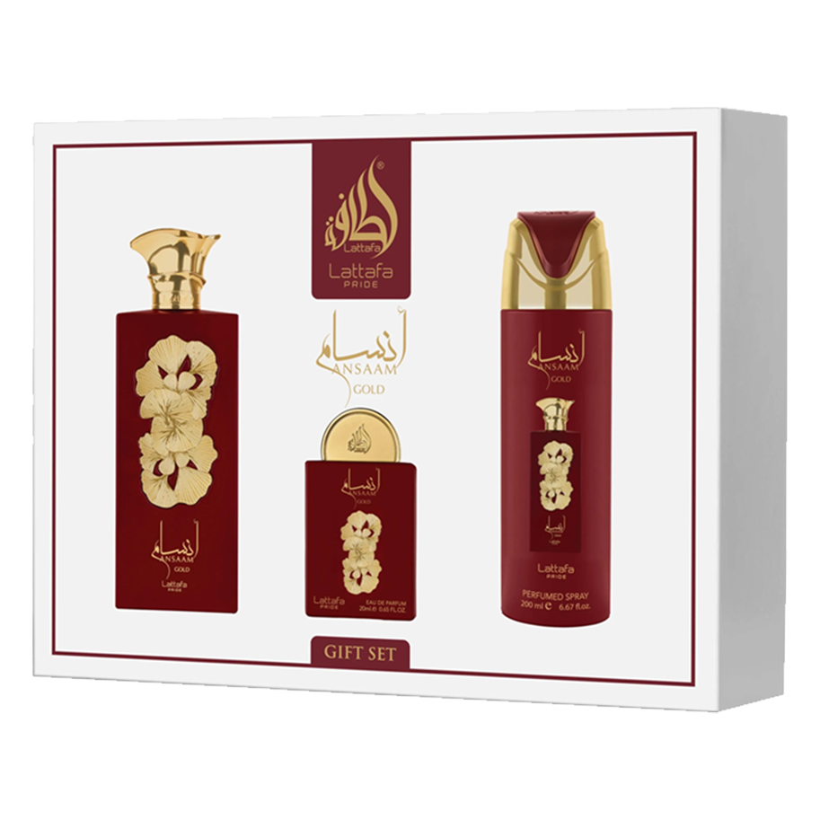 El Regalo de la Elegancia Absoluta Más que un perfume, una experiencia de lujo. Ansaam Gold es una obra maestra olfativa que huele a malvavisco tierno, flores blancas y vainilla (conocido por su parecido a fragancias de altísima gama). Este Gift Set es el regalo perfecto, ofreciendo el perfume junto con sus complementos para crear un ritual de belleza que prolonga el aroma todo el día. ¿Por qué elegirlo?