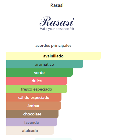 • Notas de Fondo (Lo que dura en la piel): Ámbar gris concentrado, Vainilla, Almizcle y Maderas nobles.